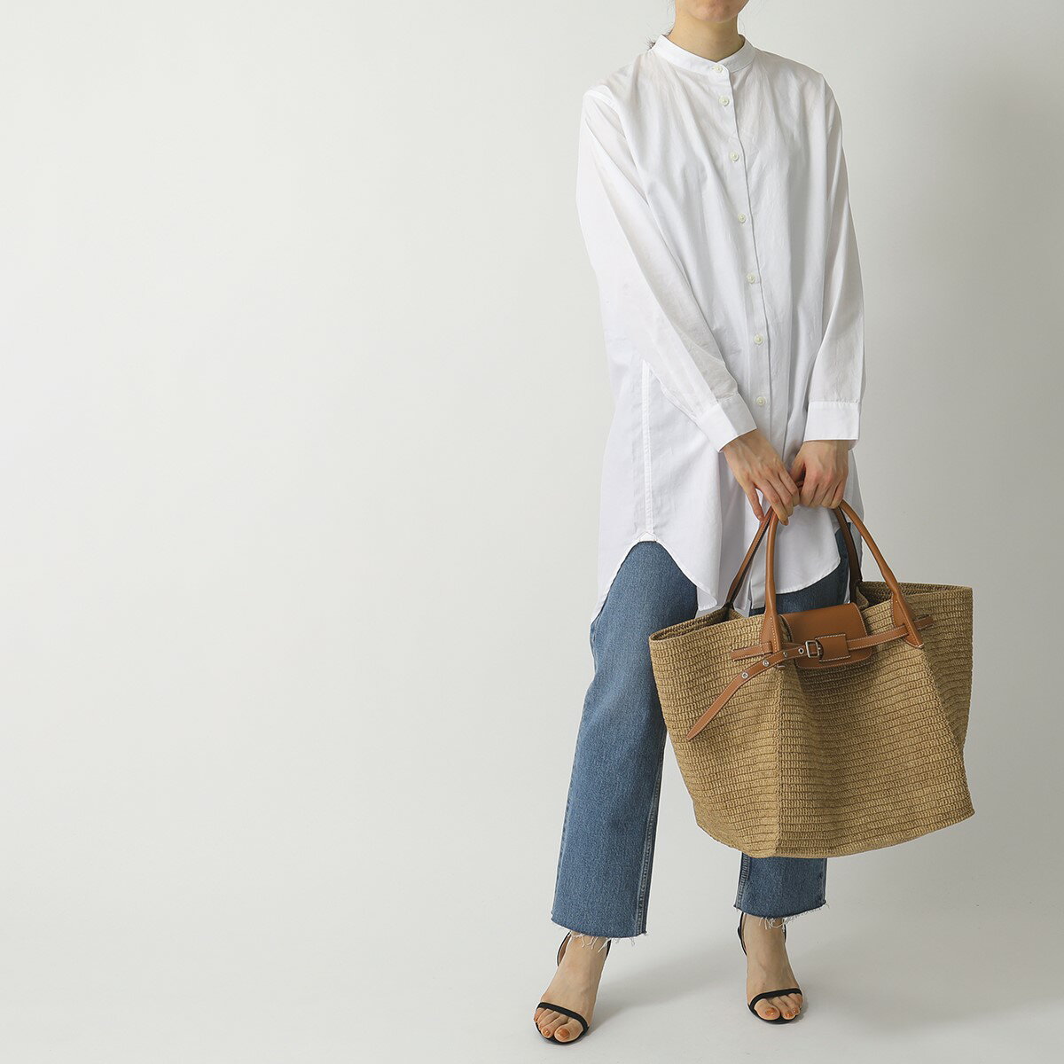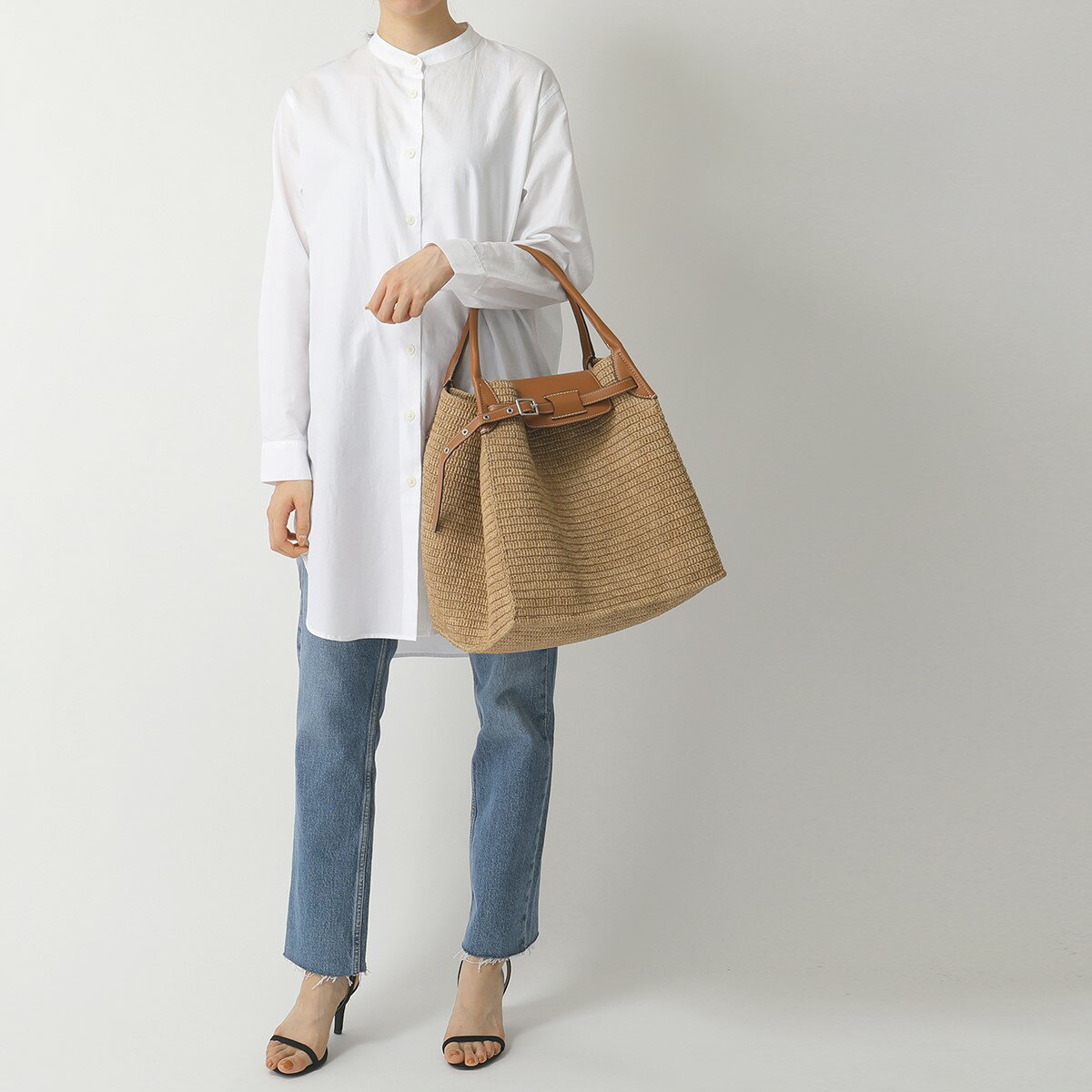 ラフィア×レザーの夏のムード漂うトートバッグ。